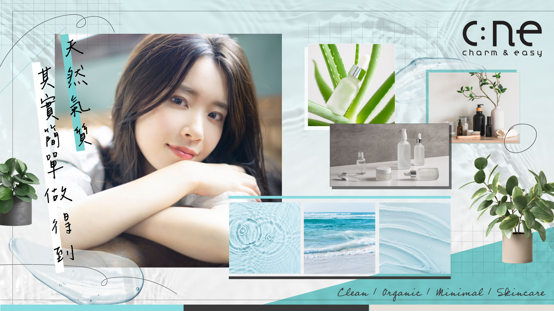 This is a social media campaign. Here is the moodboard. The brand color is light blue and grey and the brand image is clean and natural. So, I designed the theme by thinking of water which is pure and clean. I used a Japanese style to create a younger aesthetic because the target audience is young ladies.